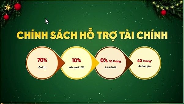 - Vay ngân hàng tối đa 70% giá trị sản phẩm, lãi suất 0% trong 24 tháng
